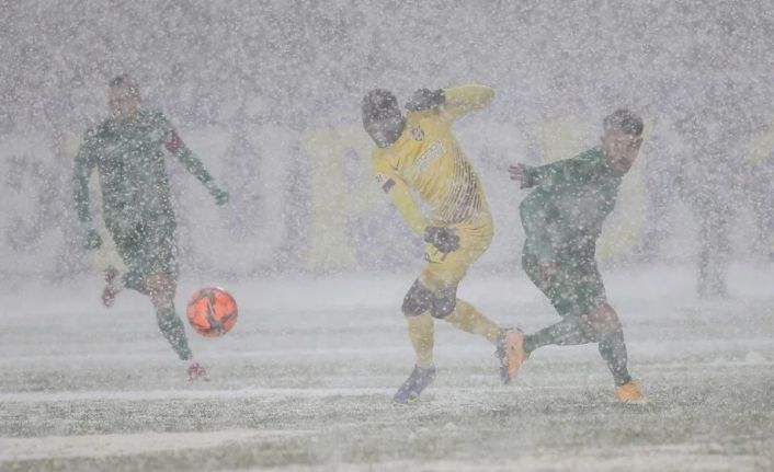 Spor Toto 1. Lig'in 22. haftasında dün başlayan ancak yoğun kar yağışı nedeniyle bugüne ertelenen Eyüpspor-Bursaspor mücadelesi, yine oynanamadı.