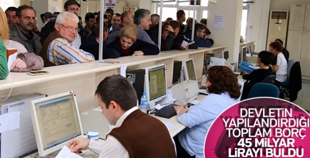 Hazine ve Maliye Bakanlığı'ndan yapılan açıklamada, "Yapılandırma kapsamında bugüne kadar mükelleflere ait 45,3 milyar lira tutarında borç yapılandırıldı." denildi.