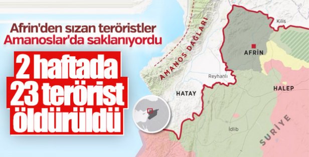 Amanos Dağları'nda güvenlik güçlerince son 2 haftada yürütülen operasyonlarda, PKK'nın sorumlularının da aralarında bulunduğu 23 terörist öldürüldü.