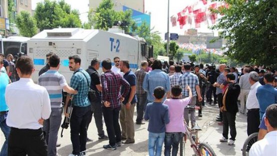Bu arada HDP seçim bürosu önünde Emniyet Müdürlüğü Güvenlik Şube Müdürü Volkan Şen ile DBP İl Başkanı Reşit Teymur arasında tartışma yaşandı.