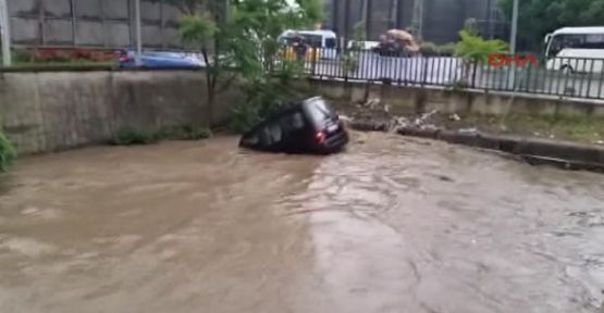 Dün akşam saatlerinde etkili olan sağanak yağış nedeniyle Kadıköy'de bulunan Kurbağalıdere taştı. Taşmanın etkisiyle dere kenarında park halinde bulunan iki araç, akıntının etkisiyle taşan dereye sürüklendi. Büyük hasar gören araçları dereden çıkarmak için bugün çalışma başladı. Araçlar vinçler dereden çıkarıldı.