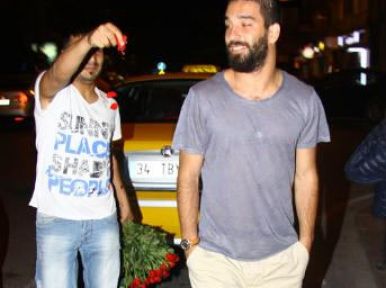 Gecenin sonunda, gül satan bir çocuğun Arda'nın başından aşağı gül yaprağı dökmesi ünlü futbolcuyu utandırdı.