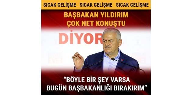 Başbakan Yıldırım, Altındağ Kültür Sarayı'nda düzenlenen 'Ankara Sivil Toplum Kuruluşları Evet Diyor' programında konuştu. Başbakan Yıldırım, 'Bu anayasanın herhangi bir yerinde eyalet sistemi varsa ben bugün Başbakanlık görevini bırakacağım' dedi.