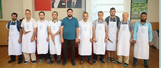 Gruplar halinde düzenlenen kursun sonunda 25 kasaba “Kurban Kesim Elemanı" sertifikası verilirken bıçak ve kasap önlüğü de hediye edildi.