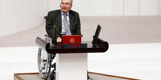 Baykal, tekerlekli sandalyede, görevlilerin yardımıyla kürsüye geldi. Bu arada milletvekilleri Baykal'ı ayakta alkışladı. Baykal, kürsüye gelirken milletvekillerini eliyle selamladı.