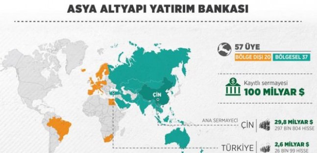 Türkiye, Asya Altyapı Yatırım Bankası'na resmen ortak oldu. Altyapı yatırımlarını finanse edecek banka, Dünya Bankası'na da rakip olacak.