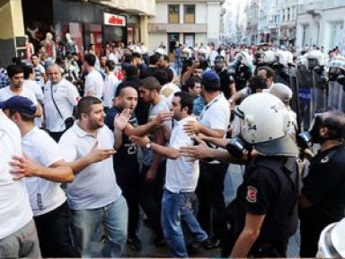 İki grup arasında tampon oluşturan polis, gerginlik büyüyünce Kasımpaşa taraftarlarına biber gazı ile müdahale etti. Hükümetin çözüm sürecinde yeni adımlar atmasını isteyen BDP üyeleri Galatasaray Meydanı’nda toplandı. "Hükümet Adım At" sloganıyla yapılan basın açıklamasına BDP Milletvekili Sebahat Tuncel de katıldı. Basın açıklaması yapan gruba önce yaşlı bir vatandaş tepki gösterdi. "Türk milleti diye bağırın" şeklinde tepki gösteren yaşlı adam, polis tarafından uzaklaştırıldı.