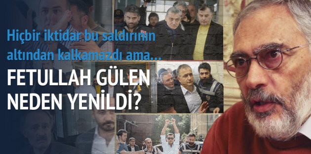 Ama öyle olmadı… Böylesine avantajlı olmasına rağmen acaba Cemaat niçin kaybetti? Erdoğan'ın sezgisel yetenekleri, dik duruşu ve toplumu teyakkuza çağırması tabii ki çok önemli. Ancak gerekli olmasına karşın yeterli koşul değil. Yeterli koşul muhafazakar toplumun Gülen cemaatini 'tanımasıdır'… Yenilginin asıl nedeni Cemaatin toplumsal algı ve tepkiyi hiçe sayarak, eylemlerini ve stratejisini müdanaasızca yerelde de sürdürmesi ve giderek Anadolu'nun çeşitli çevrelerinde bir nefret nesnesine dönüşmesiydi. 'İnsan' için uğraştığını söyleyen, ama aslında insanı kişiliksizleştirerek örgütün nesnesi kılan bu yaklaşımın, nihayette bizzat kendi toprağında çökmesi şimdi geriye bakıldığında çok doğal gözüküyor.