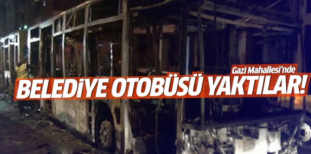 Gazi mahallesi'nde yüzleri maskeli bir grup, molotof kokteyli atarak belediye otobüsünü yaktılar. yangın sonucu belediye otobüsü enkaz yığınına dönerken, polis saldırganların yakalanması için çalışma başlattı.