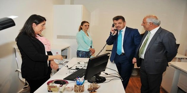 Aynı zamanda bina girişini yenilediklerini, Çağrı Merkezi, Beyaz Masa ve Genel Evrak hizmet birimlerini de yenilediklerini belirten Başkan Usta, “Bu hizmet birimlerimizin yeni yerlerinin açılışının hayırlara vesile olmasını diliyorum” diyerek açılışı gerçekleştirdi. Daha sonra vatandaşlarla sohbet eden Başkan Usta, Çağrı Merkezi’ne gelen bir telefona da bizzat cevap verdi.