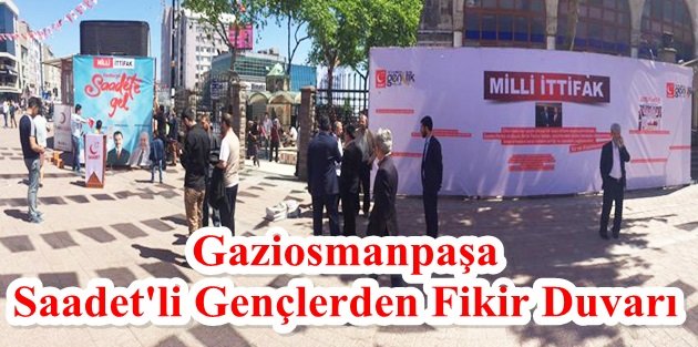 Gençlik Kollarının düzenlediği Milli İttifak fikir duvarı çalışmasına Saadet Partisi Milletvekili Adayları Bilal Ay, M. Emin Topsakal, Lütfi Kibiroğlu, Aytekin Kurt Saadet Partisi Gaziosmanpaşa İlçe Başkanı Recep Polat, BBP Gaziosmanpaşa İlçe Başkanı Fedai Karakol ve teşkilat mensupları katıldılar.