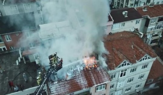 GAZİOSMANPAŞA'da 5 katlı bir binanın çatısı henüz belirlenemeyen bir nedenle alev alev yandı. Yangın itfaiye ekiplerinin müdahalesiyle söndürüldü.