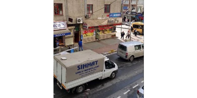 Kar maskeli ve otomatik silahlı 2 soyguncu dışarı çıkar çıkmaz havaya 2 el ateş açıyor. Araçlarına binen soyguncular kaçarken bu kez peşlerinden kuyumcu ateş açıyor. Silah seslerinin ardından araç hızla karşı sokağa giriyor. Yere gelen bir kurşun nedeniyle kalkan toz gözlerden kaçmıyor.