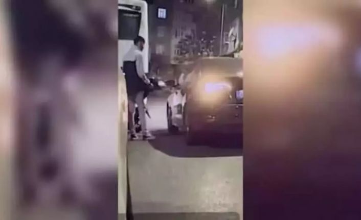 Genç şahsın elindeki uziyle sağa sola gezindiği anlar çevredeki vatandaşlar tarafından kameraya kaydedildi.