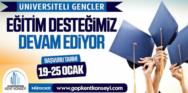 Gaziosmanpaşa Kent Konseyi’nin üniversiteli gençlere verdiği eğitim desteğini almak isteyenler, 19-25 Ocak 2016 tarihleri arasında www.gopkentkonseyi.com adresine başvuruda bulunabilecek.