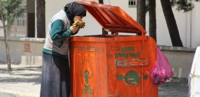 Gaziantep'te çöpten çıkardığı ekmek, meyve ve sebze parçalarıyla karnını doyurmaya çalışan Suriyeli genç kadının görüntüsü yürek sızlattı.