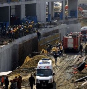 Bu sırada perdenin yıkılması ile beton dökülen alana düşen 3 işçi, moloz yığını altında kaldı. Arkadaşlarının perde ile duvar arasındaki bölüme düştüğünü gören diğer işçiler, çalışmalarını durdurarak hemen arkadaşlarını kurtarmaya çalıştı.