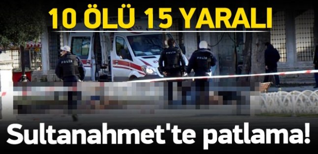 İstanbul Sultanahmet'te bir patlama meydana geldi. Patlamada 10 kişi öldü, 15 kişi yaralandı.