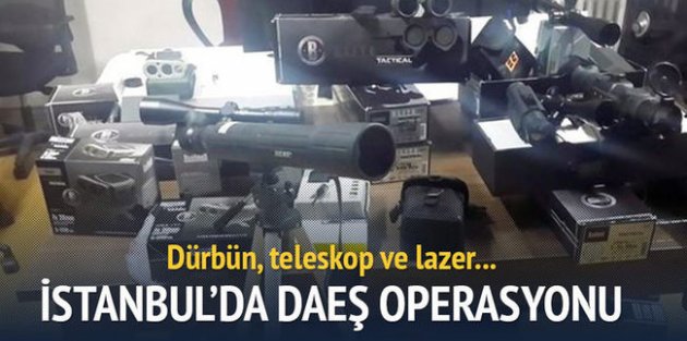 İstanbul'da terör örgütü DAEŞ'e yönelik düzenlenen operasyonlarda Çeçenistan ve Dağıstan sorumluları oldukları ileri sürülen 3 kişinin de aralarında bulunduğu 12 yabancı uyruklu kişi gözaltına alındı.İstanbul Emniyet Müdürlüğü Terörle Mücadele Şube Müdürlüğü ekipleri, uzun süreli teknik ve fiziki takip sonucu dün Büyükçekmece'de terör örgütü DAEŞ'e operasyon düzenledi. Operasyonda Çeçenistan uyruklu Muhammet Al Hac S. isimli şahıs gözaltına aldı. Şahsa ait adreste yapılan aramalarda 3 dürbün, 6 lazer mesafe ölçer ve 1 teleskop ele geçirildi. Emniyetteki işlemelerinin ardından adliyeye sevk edilen şüphelinin, çıkarıldığı mahkemece tutuklandığı bildirildi.