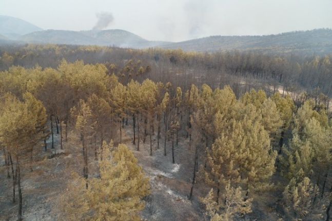 Yanan ağaçlar ve yok olan yeşil doğa, yangından kalan küller ile siyaha büründü.