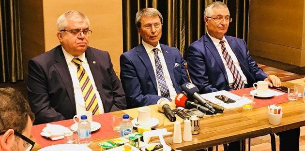 İstifalara ilişkin hazırlanan ortak metni, Halaçoğlu, bir otelde kamuoyuyla paylaştı.