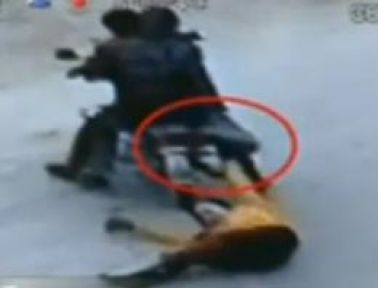 Çantasını bırakmayan bayanın motosiklet tarafından yerde sürünmesine sahne olan video, Çin'de en çok izlenen görüntülerden biri oldu.