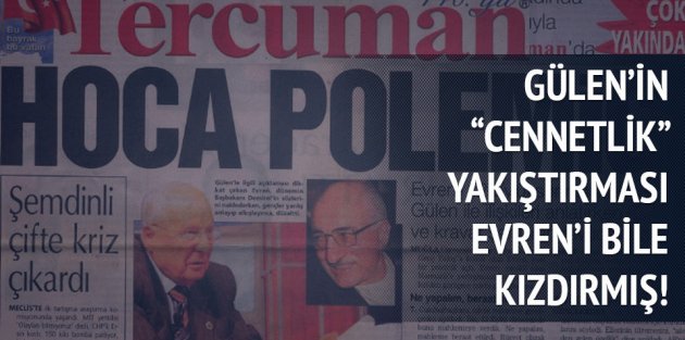 Fetullah Gülen’in dini kuralları hiçe sayarak Kenan Evren’i “Cennetlik” ilan etmesi darbeci generali bile kızdırdığı ortaya çıktı. 2005 yılında bir gazeteye konuşan Kenan Evren “kimin Cennetlik olduğunu sadece Allah bilir” diyerek cuntaya destek vermek için darbeci generalleri “cennetlik” ilan eden Fetullah Gülen’e ders gibi bir cevap veriyor.