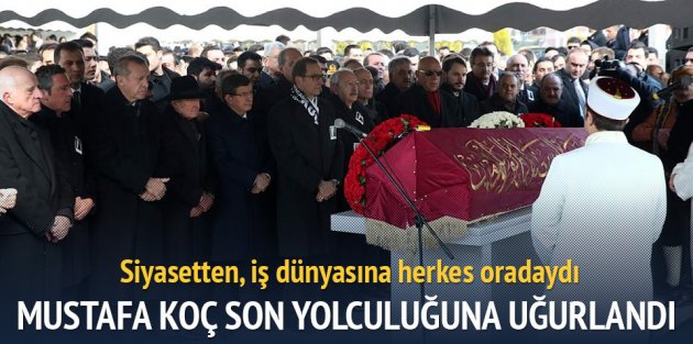 Mustafa Koç son yolculuğuna uğurlandı. Marmara Üniversitesi İlahiyat Fakültesi Tatbikat Camii’nde cenaze hazırlıkları yapıldı. Siyasetten iş dünyasından sanat dünyasından herkes oradaydı. Cenaze namazının ardından Mustafa Koç dedesi Vehbi Koç'un yanına Zincirlikuyu aile kabristanına defnedildi.