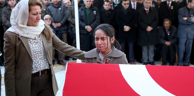 Törende şehidin iki çocuğundan biri olan 8 yaşındaki Erva, "Baba hani gitmeyecektin" dedi. Öte yandan, şehidin eşi ve annesi tabuta sarılarak uzun süre gözyaşı döktü.