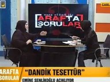 Elönü'nün tesettür sorusu üzerine Şenlikoğlu, "Tesettür firmaları hem şık hem tesettüre uygun kıyafetler dikemezler mi? Dikebilirler. Ne gerek var dandik şeyler yaptılar!" diyerek Elönü'nün kıyafetinin tesettüre uygun olmadığını söyledi. Şenlioğlu yayında Elönü'ye canlı yayında "Mesela boğazın görülüyor. Senin boğazının görünmesi tesettüre uygun mu?" eleştirisine Elönü'nü itiraz etti. Bu itiraza Şenlikoğlu, "Ya bir sopa getirin şunu döveyim" karşılığını verdi.