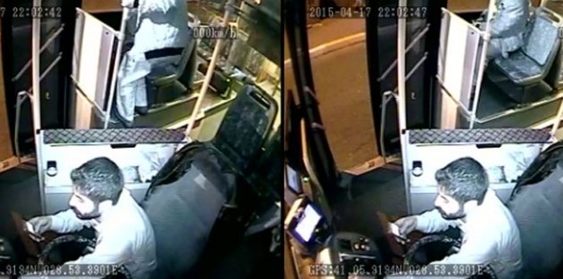Görüntülerde, otobüs şoförü sefer saatini beklerken telefonla konuşmaya başlıyor. Bir süre telefonla konuştuktan sonra otobüse binen bir şahısla konuşmaya başlayan şoför, sağ çaprazında bulunan yolcu koltuğuna oturuyor. Koltuğa cüzdanını bırakan şoför, daha sonra yerinden kalkıp otobüsten aşağıya iniyor. Sefer saati gelen şoför, yolcu almaya başlıyor. Yolculardan biri şoförün cüzdanını unuttuğu koltuğa oturuyor. Cüzdanı fark eden yolcu, cüzdanı alarak karıştırmaya başlıyor. Cüzdanı alıp cebine atan şüpheli, bir süre sonra otobüsten iniyor.