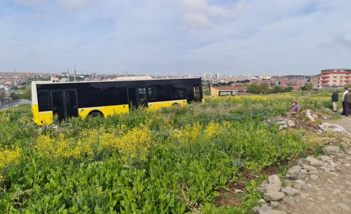 Kaza nedeniyle hasar oluşan İETT otobüsü, olay yerine çağrılan çekici yardımıyla bulunduğu araziden çıkarıldı.