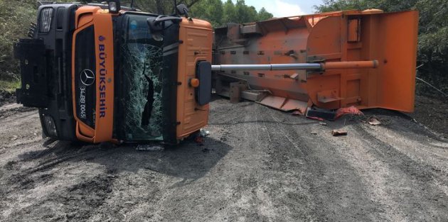 Kaza, Habibler Taşocağı yolu üzerinde meydana geldi. Toprak yüklü kamyon, damperi kaldırıldığı sırada yağmur nedeniyle yumuşayıp gevşeyen zeminde yan yattı. Kazada kamyon sürücüsü yara almadan kurtulurken olay yerine polis ve belediye ekipleri sevk edildi.