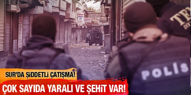 Diyarbakır'ın Sur ilçesinde devam eden çatışmalar şiddetlenirken, 13 güvenlik görevlisi yaralandı.