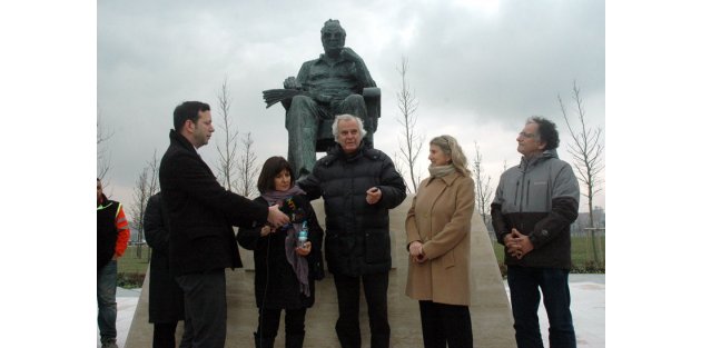 Tarık Akan Yaşar Kemal'in heykeline gitti