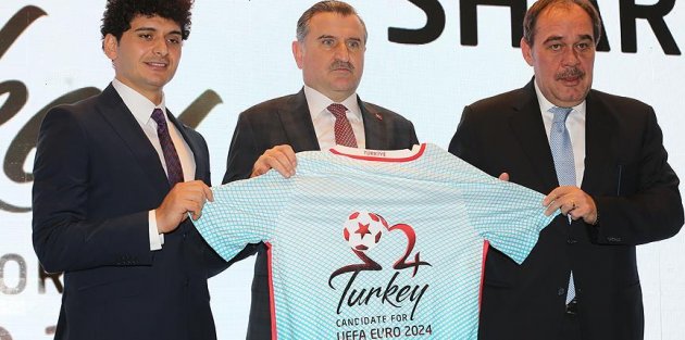 EURO 2024'ün ev sahipliği adaylığı için belirlenen logonun tanıtıldığı toplantıda, Türkiye'nin sloganı ise 'Birlikte paylaşalım' olarak açıklandı.