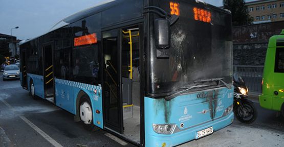 Beyoğlu'nda yüzleri maskeli bir grup, Özel Halk Otobüsü'ne molotof bombası ve taşlarla saldırdı. İçinde 30 yolcusu bulunan otobüsün şoförü geri giderek kaçmaya çalıştı.